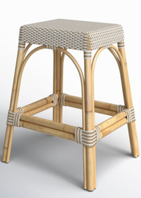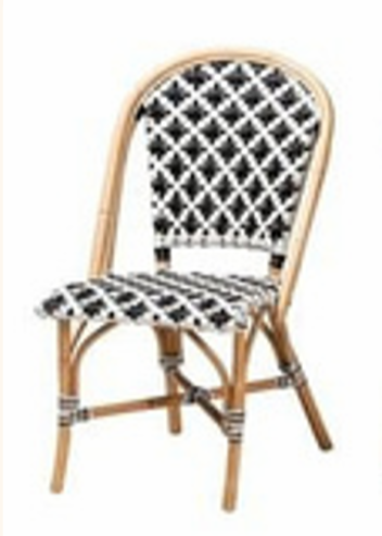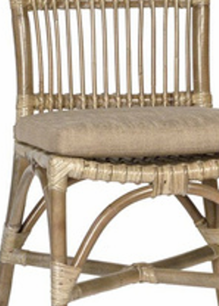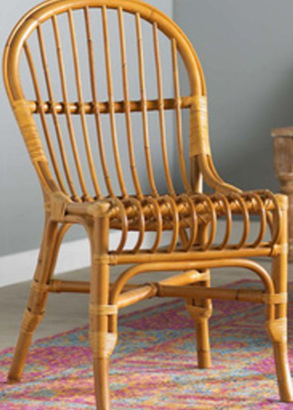 The contrast between the natural rattan and the lighter woven seat adds visual interest